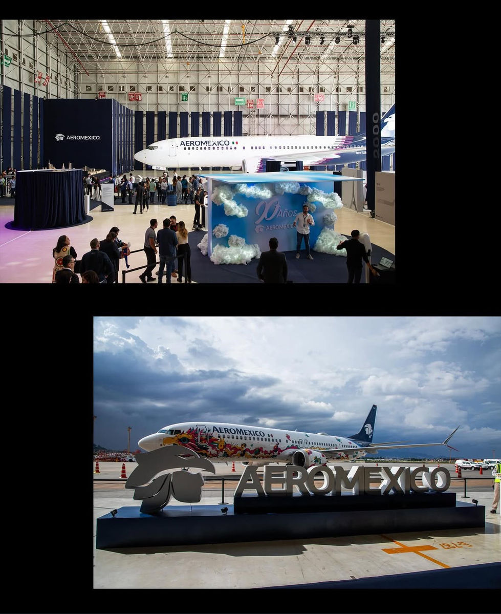 90th-anniversary celebration event for Aeroméxico, held in its hangar at Benito Juárez International Airport in Mexico City